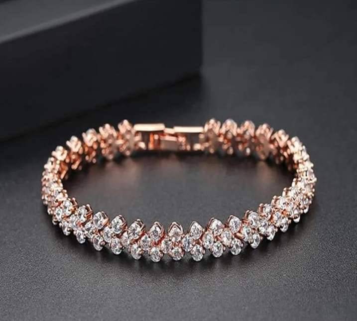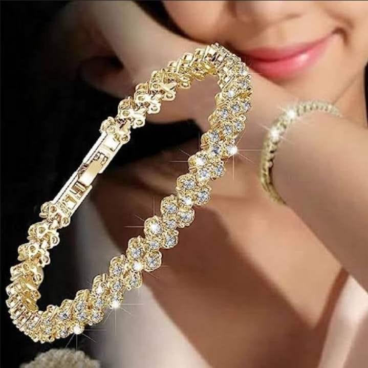রোমান স্টাইলের ক্রিস্টাল ডায়মন্ড ব্রেসলেট, গ্ল্যামারাস ডায়মন্ড চেইন ব্রেসলেট লেডিস চেইন ব্রেসলেট