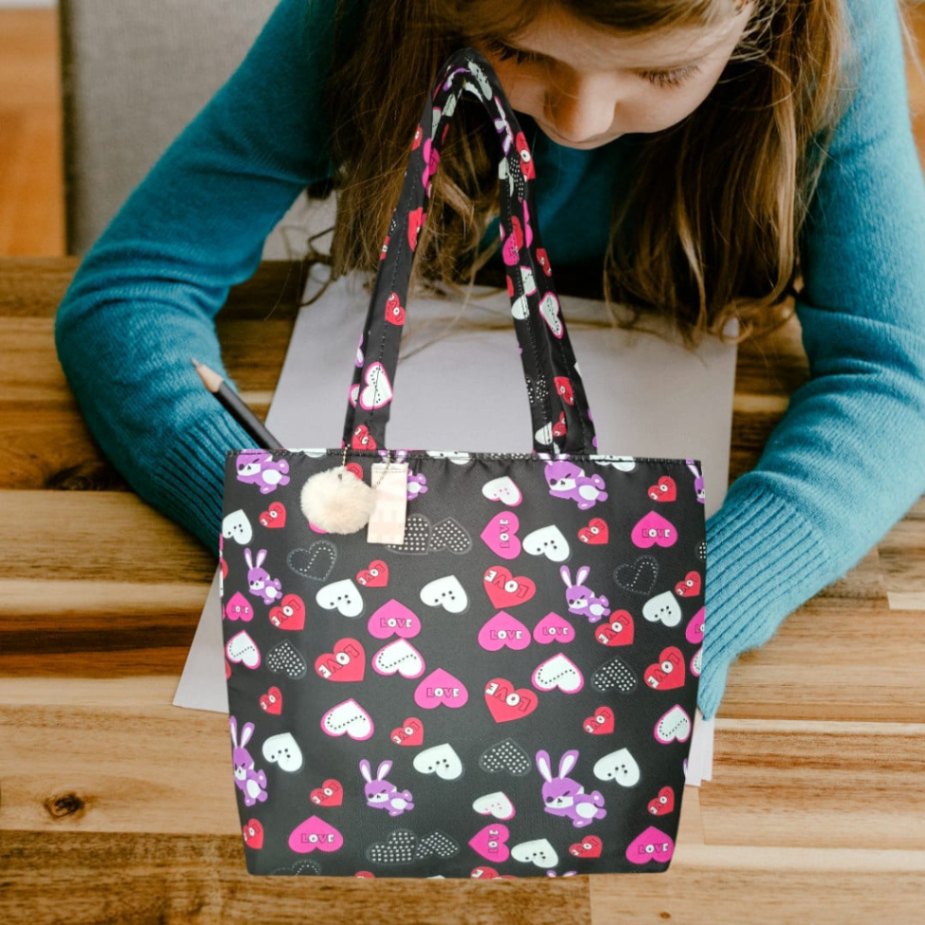 Love Printed Tote Bag with Zipper Fashion Shoulder Bag